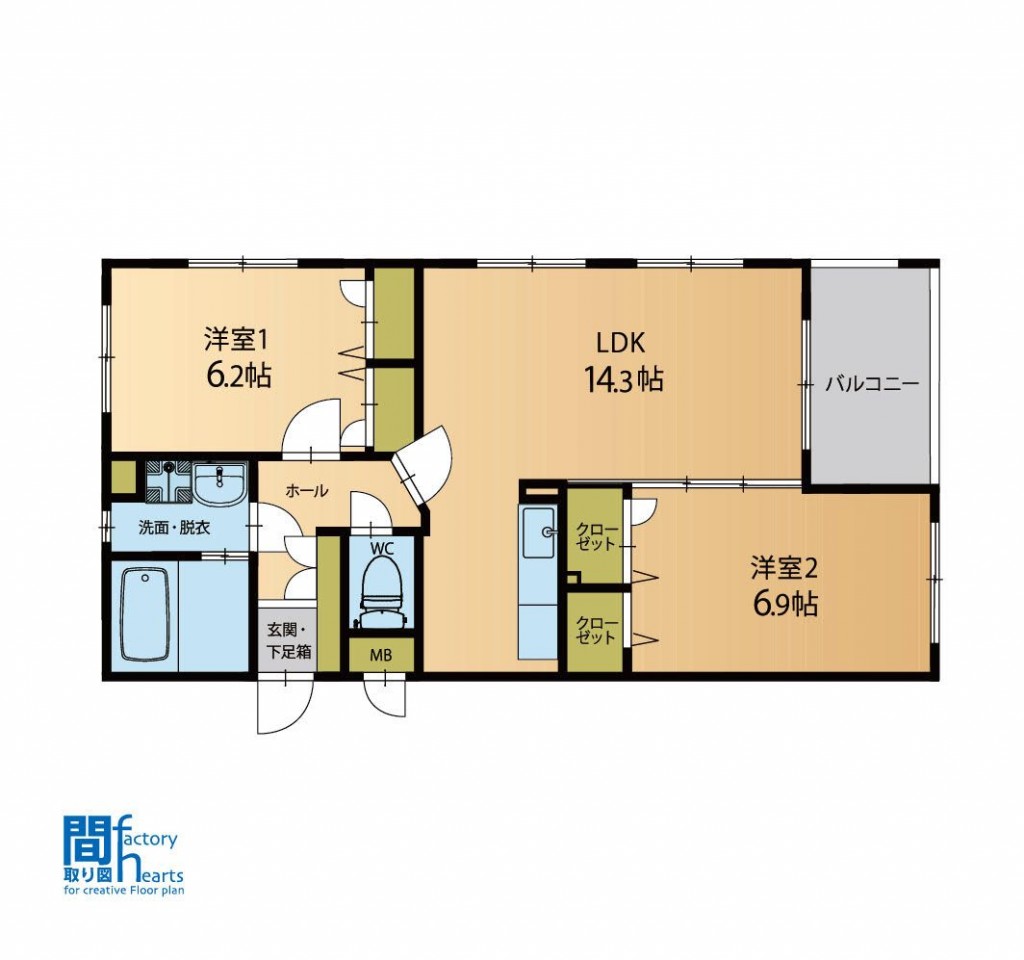| 間取り | 2LDK | 面積 | 61.62 ㎡ |