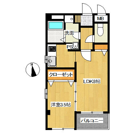【南向きの1DK】生活便利☆学校・通勤・買物・交通☆2口コンロが置けるキッチン☆フロ・トイレ別