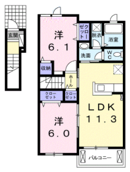 角部屋、追い炊き・浴室乾燥・モニターホンあります。サンルーム付きの2DKです。