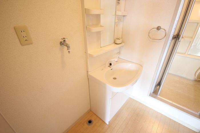| 設備 | 角部屋日当り良好閑静住宅街ガスコンロ設置可フローリング出窓収納スペース二人入居可 可プロパンガス 有給湯駐輪場シャッター(雨戸)BS端子トイレバス・トイレ 別室シャワー洗面所シャンプードレッサー室内洗濯機置場独立洗面脱衣所庭ペット不可 | ||