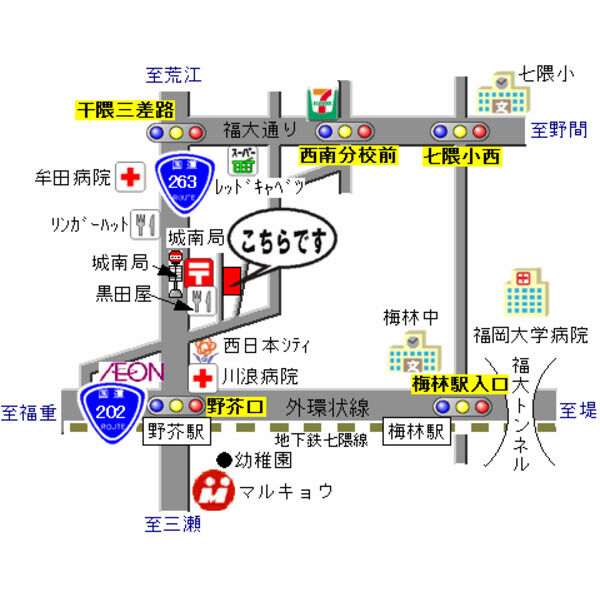 福岡市営地下鉄七隈線 野芥駅 397m 徒歩6分 福岡市営地下鉄七隈線 梅林駅 911m 徒歩13分 福岡市営地下鉄七隈線 賀茂駅 1,269m 徒歩18分 |
