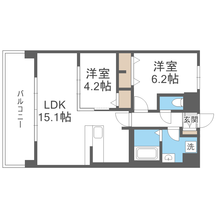 2LDK / 57.36 ㎡