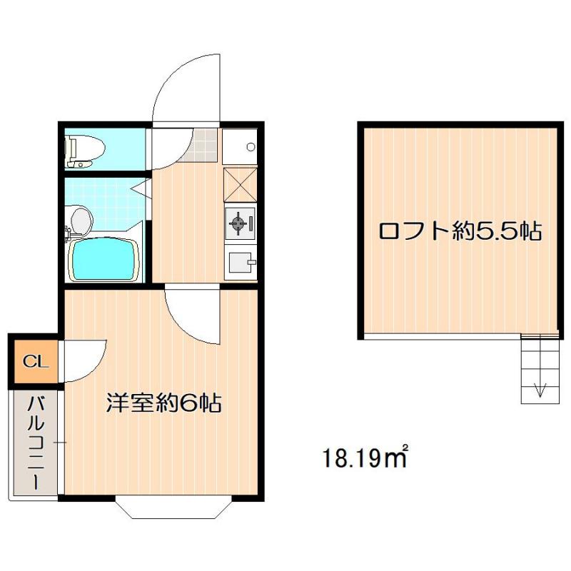 | 間取り | 1K | 面積 | 18.19 ㎡ |