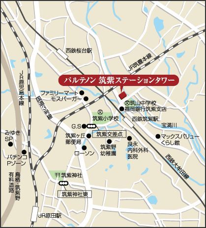 西鉄天神大牟田線 筑紫駅 徒歩4分 西鉄天神大牟田線 桜台駅 徒歩19分 JR鹿児島本線 原田駅 2,321m 徒歩31分 |