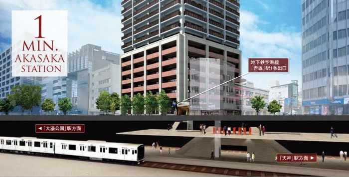 福岡市営地下鉄空港線 赤坂駅 85m 徒歩2分 福岡市営地下鉄空港線 天神駅 881m 徒歩13分 福岡市営地下鉄空港線 大濠公園駅 1,082m 徒歩15分 |
