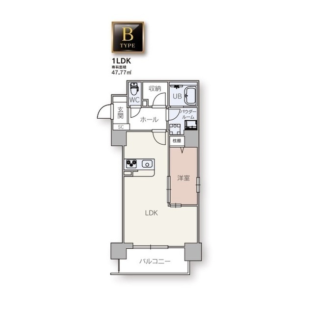 | 間取り | 1LDK | 面積 | 47.77 ㎡ |